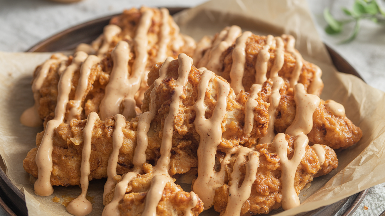 - Drizzle the Bang Bang sauce over the warm chicken and gently toss once or twice to lightly glaze the pieces.