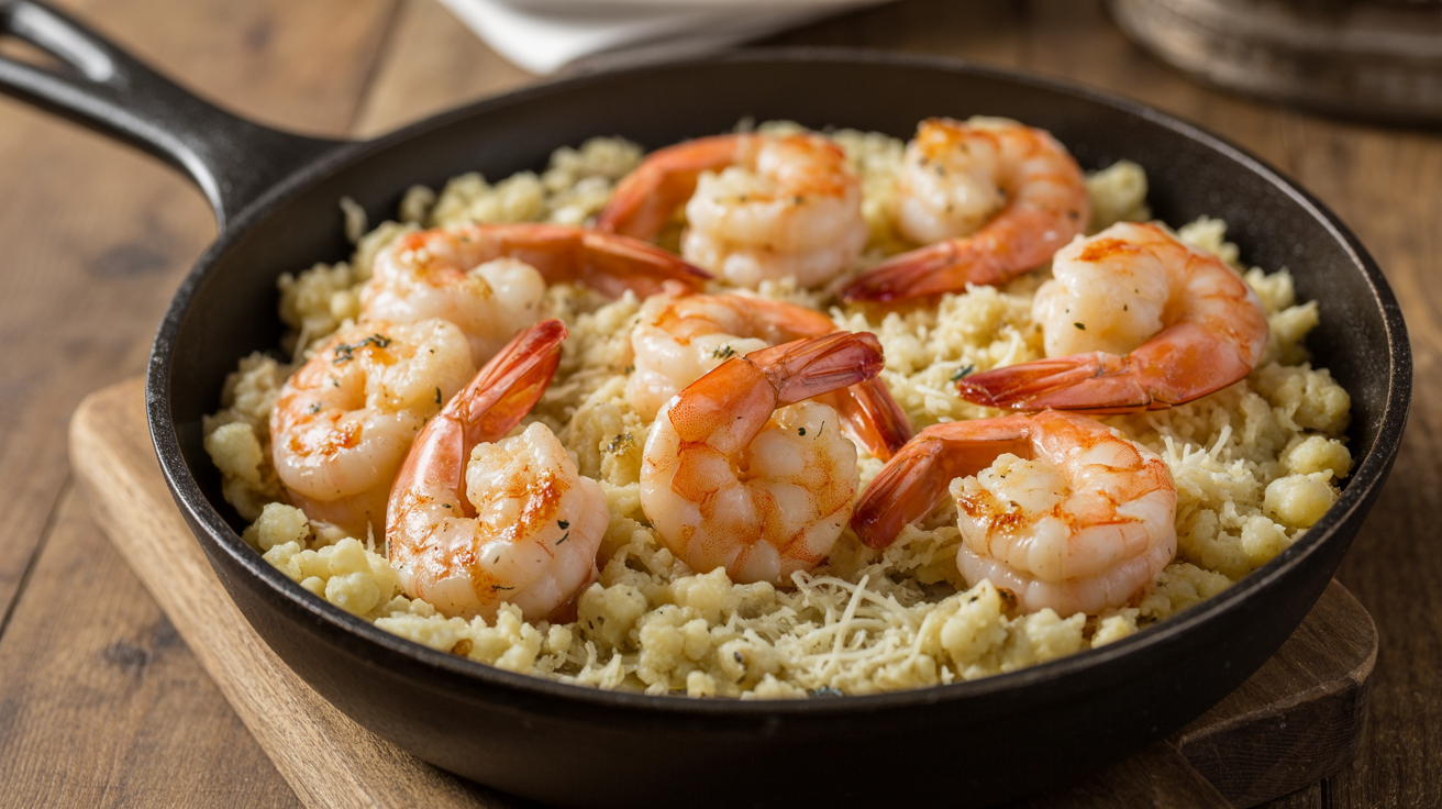 No broth, cream, wine, or lemon is required. Butter alone controls fat. Shrimp must be added back only to warm through. Once combined, the skillet should rest briefly so the cauliflower absorbs residual fat. This recipe contains no vegetables beyond cauliflower and no fillers. It stores cleanly and reheats without separation.